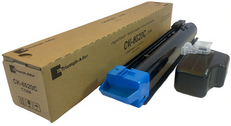 • Fabrycznie zapakowana kaseta zawierająca błękitny toner CK-8520C marki Triumph Adler.