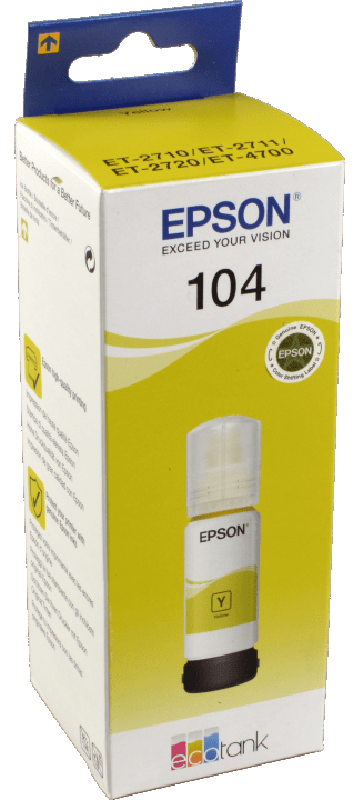 Tusz żółty Epson 104 zamiennik - Tusz żółty do Epson EcoTank ET-1810. ET-2710, ET-2711, ET-2712, ET-2714, ET-2714, ET-2715, ET-2720, ET-2721, ET-2726, ET-2810, ET-2811, ET-2812, ET-2815, ET-2820, ET-2821, ET-2825, ET-2826, ET-4700 Zamiennik żółtego…